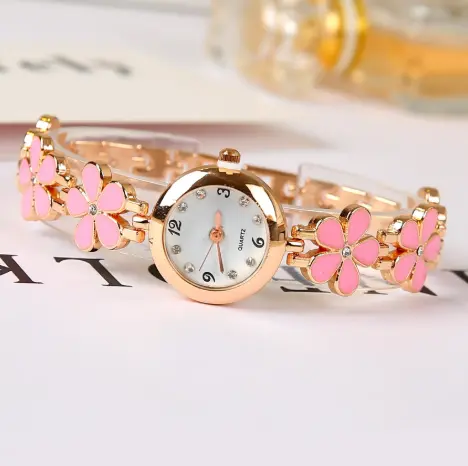 Four Leaf Clover Vintage Simple Casual Ladies Round Wristwatch Pink Code-159