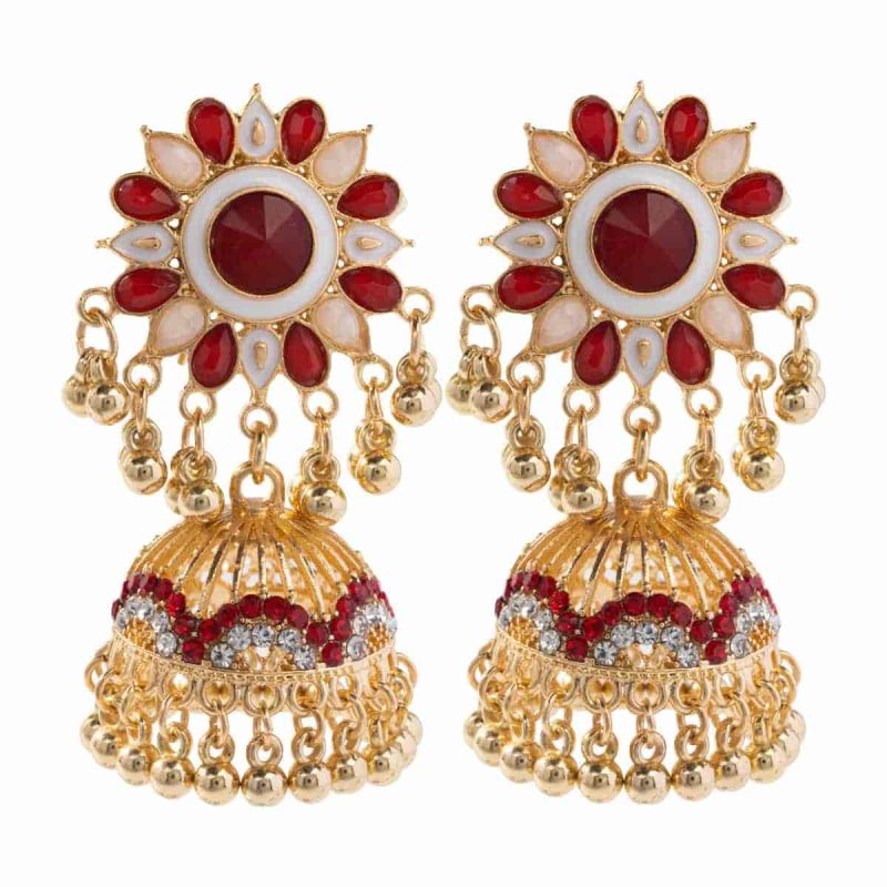 New Retro Bell Sunflower Tassel Drop Earrings Bohemian Ethnic Style Red Code-281b