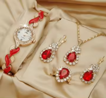 Cubic Zirconia 18K Gold-plated Copper Pendant Jewelry Set Red Code-25