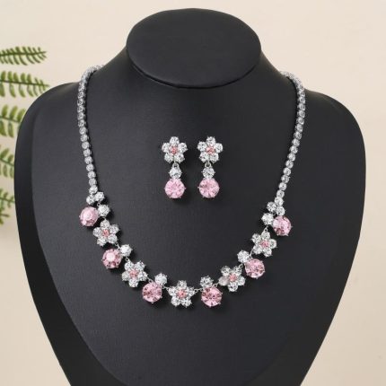 Diamond Cut Bridal Fashion Necklace Earrings Set Mix Code-218