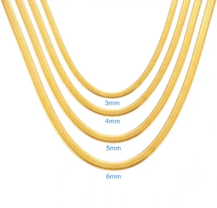 High End 4mm Stainless Steel 18k Gold Plated Thick Flat Snake Bone Chain Code-98
