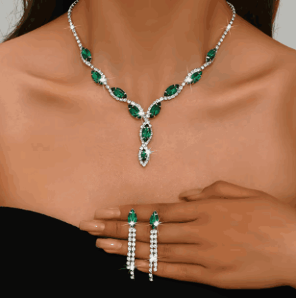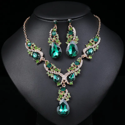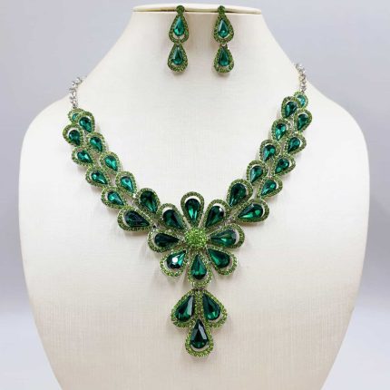 Diamond Cut Bridal Fashion Necklace Earrings Set Green Code-219