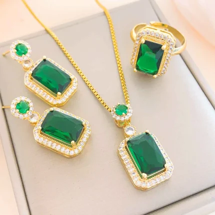 Cubic Zirconia 18K Gold-plated Copper Pendant Jewelry Set Green Code-21