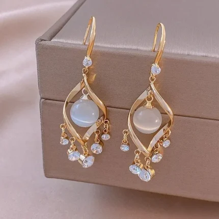 French Tassel Opal Flash Diamond Pearl Earrings Personality Drop Earrings Gold Code-46