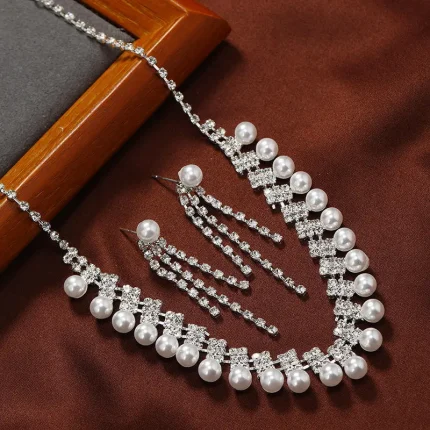 High Quality Crystal Tassel Pearl Rhinestones Necklace Earrings Set for Wedding Code-143
