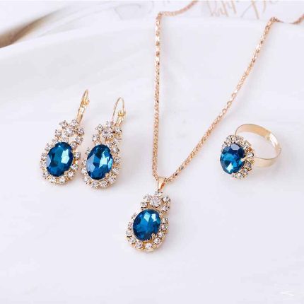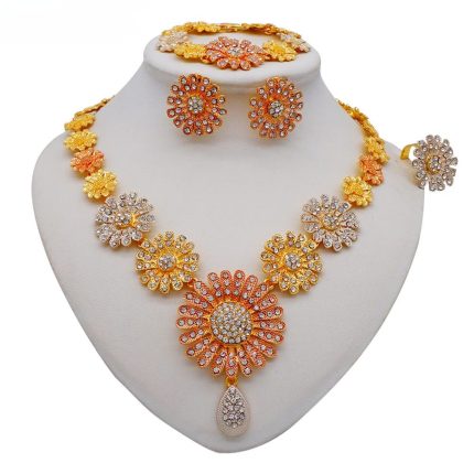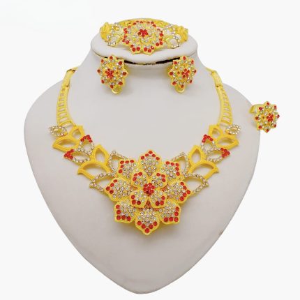 18k Gold Plated Luxury Women Jewelry with Stones Necklace Earrings Ring Bracelet 4 Pieces Set Code-209