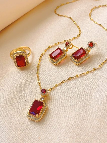 Cubic Zirconia 18K Gold-plated Copper Pendant Jewelry Set Red Code-25