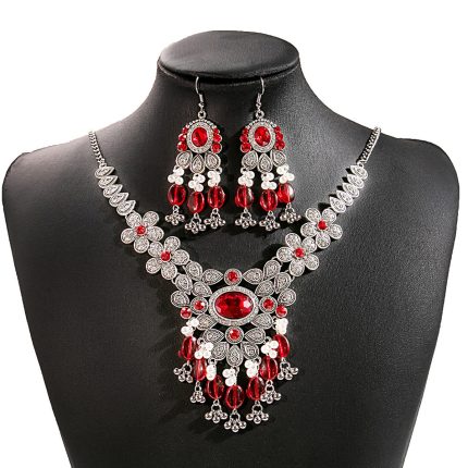 Crystal water outside alloy bride wedding flowers retro style Necklace Earrings set Red Code-277a