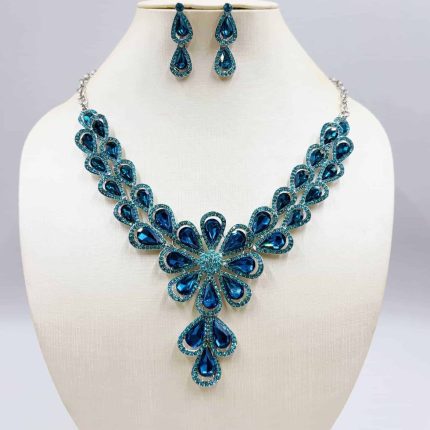 Diamond Cut Bridal Fashion Necklace Earrings Set Blue Code-216
