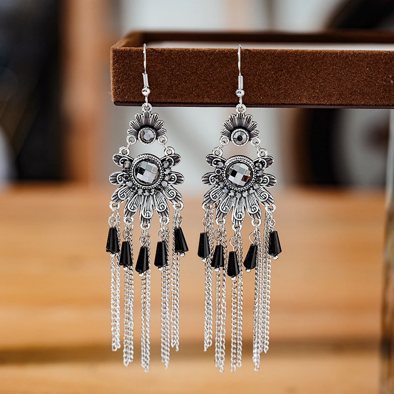 Bohemian Classic Long Rhinestone Earrings Black Code-243d