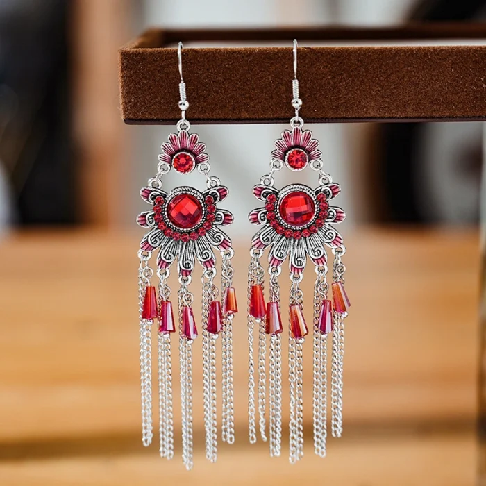 Be the first to review “Bohemian Classic Long Rhinestone Earrings Red Code-243a”