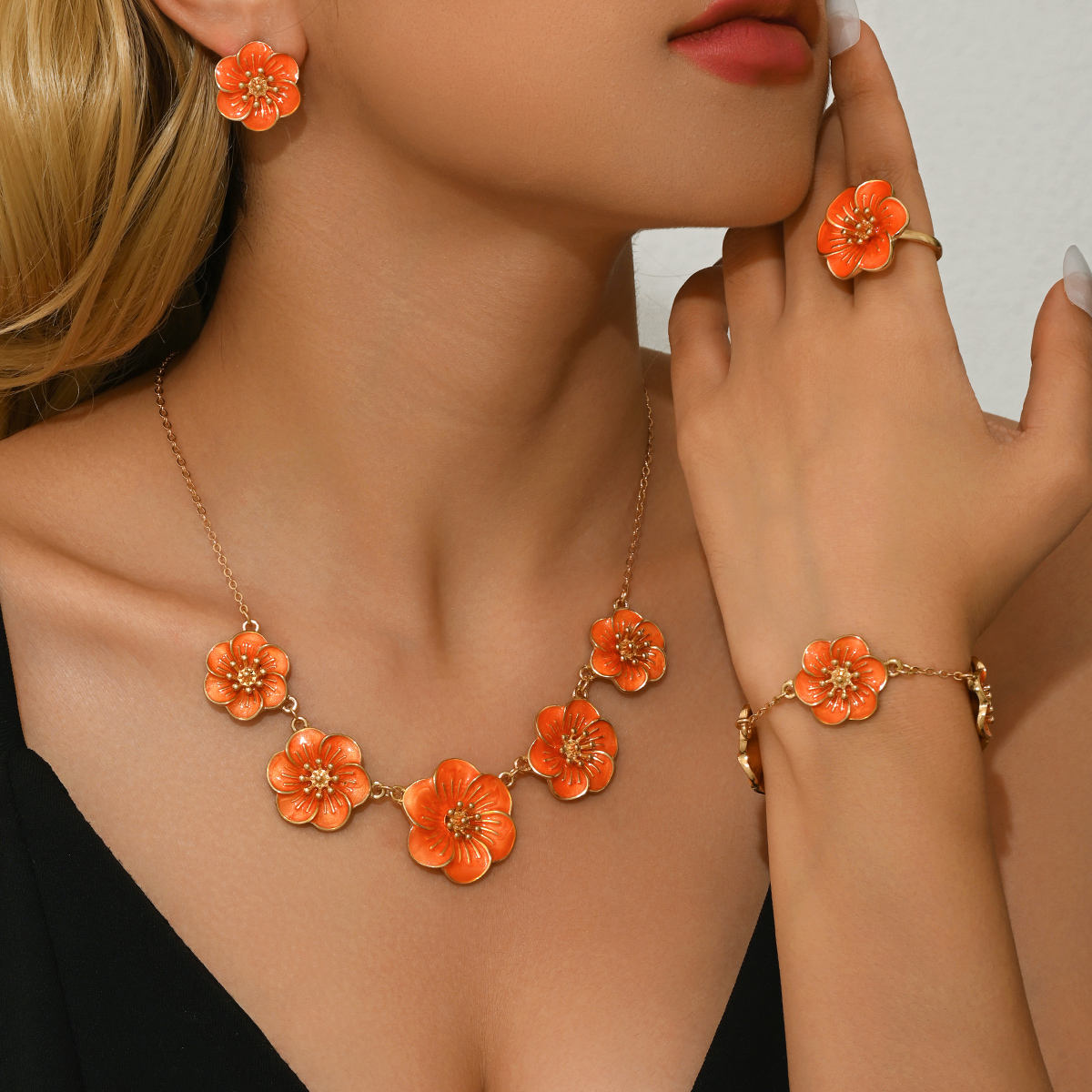European and American High-End Fashion Flower Necklace Earring Bracelet Set Code-236