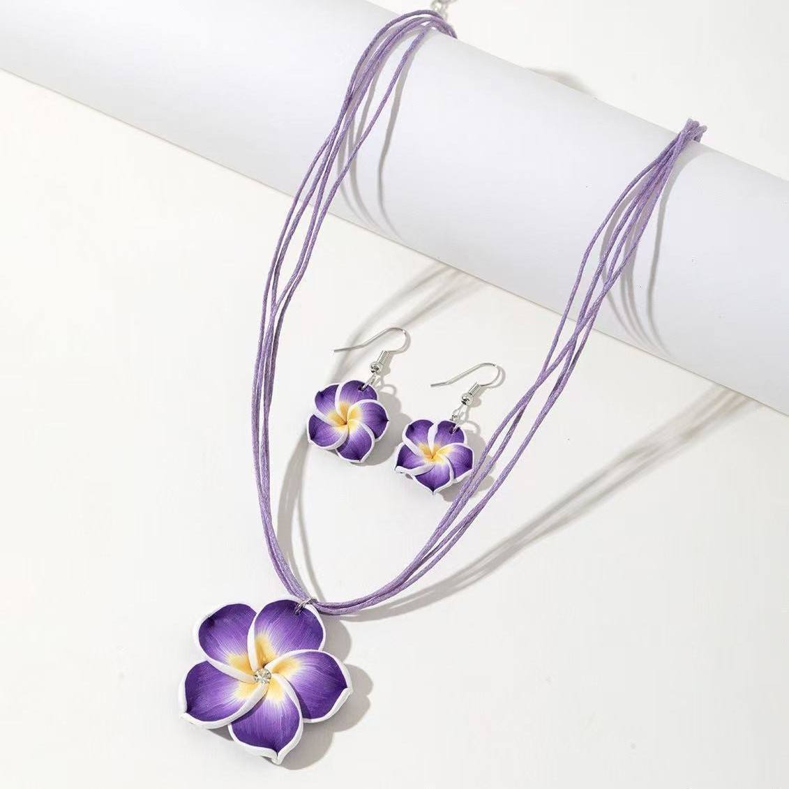 Gradient Color Flower Natural Stone Alloy Women’s Necklace Earrings Violet Code-262d