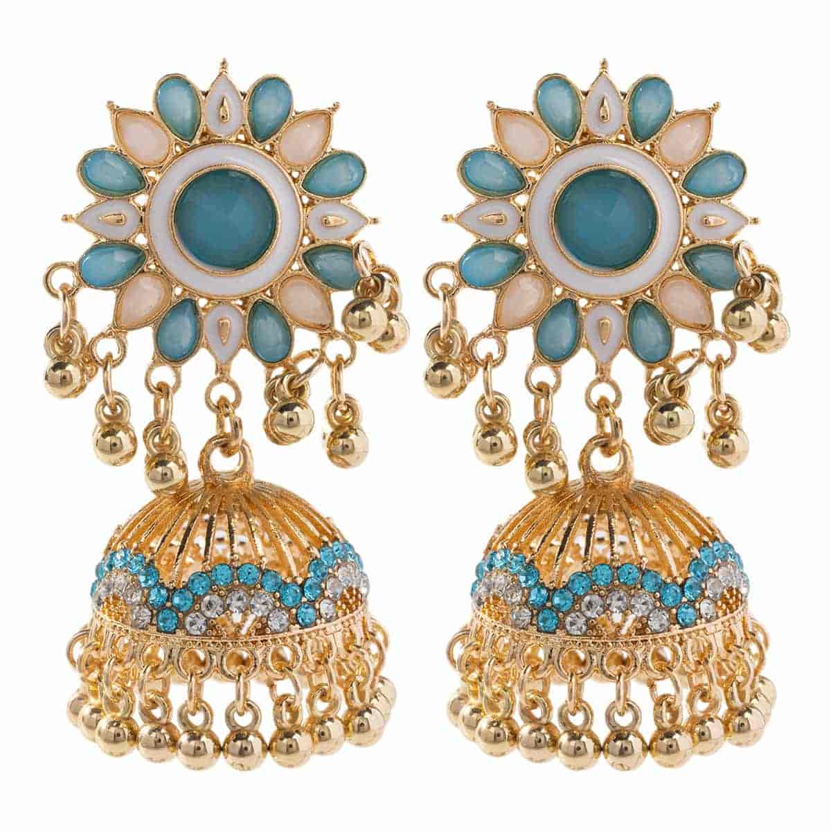 Be the first to review “New Retro Bell Sunflower Tassel Drop Earrings Bohemian Ethnic Style Sky Blue Code-281c”