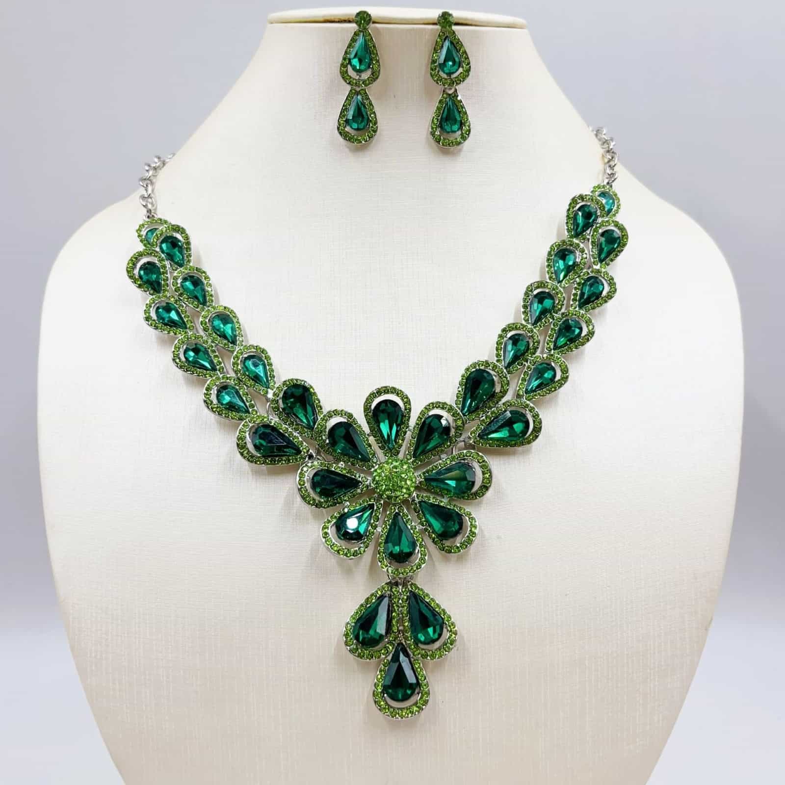 Qushine European and American Jewelry Luxury Diamond Necklace Earrings Set Green Code-278b