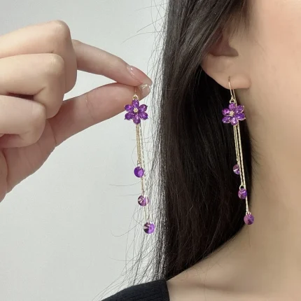 Hypoallergenic Needle Earring Purple Flower Drop Crystal Earrings Code-72
