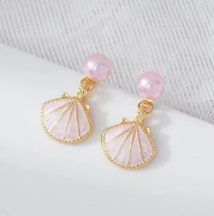 High End Elegant Retro Ocean Simple Style Gold Plated Pearl Earrings Pink Code-200b