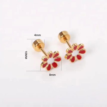 Summer Daisy Waterproof Stainless Steel Stud Earrings, Cute Design for Kids and Women Red Code-264a
